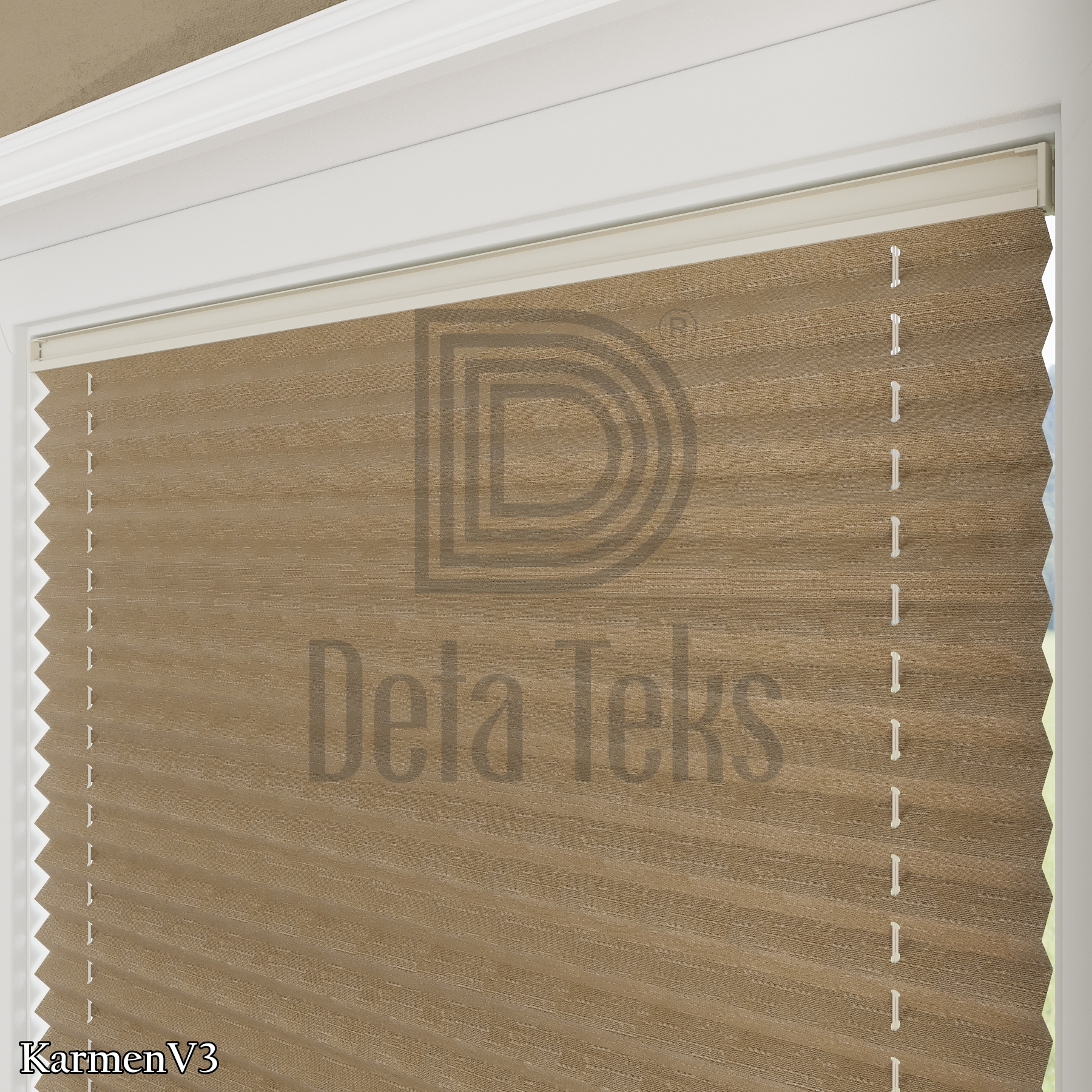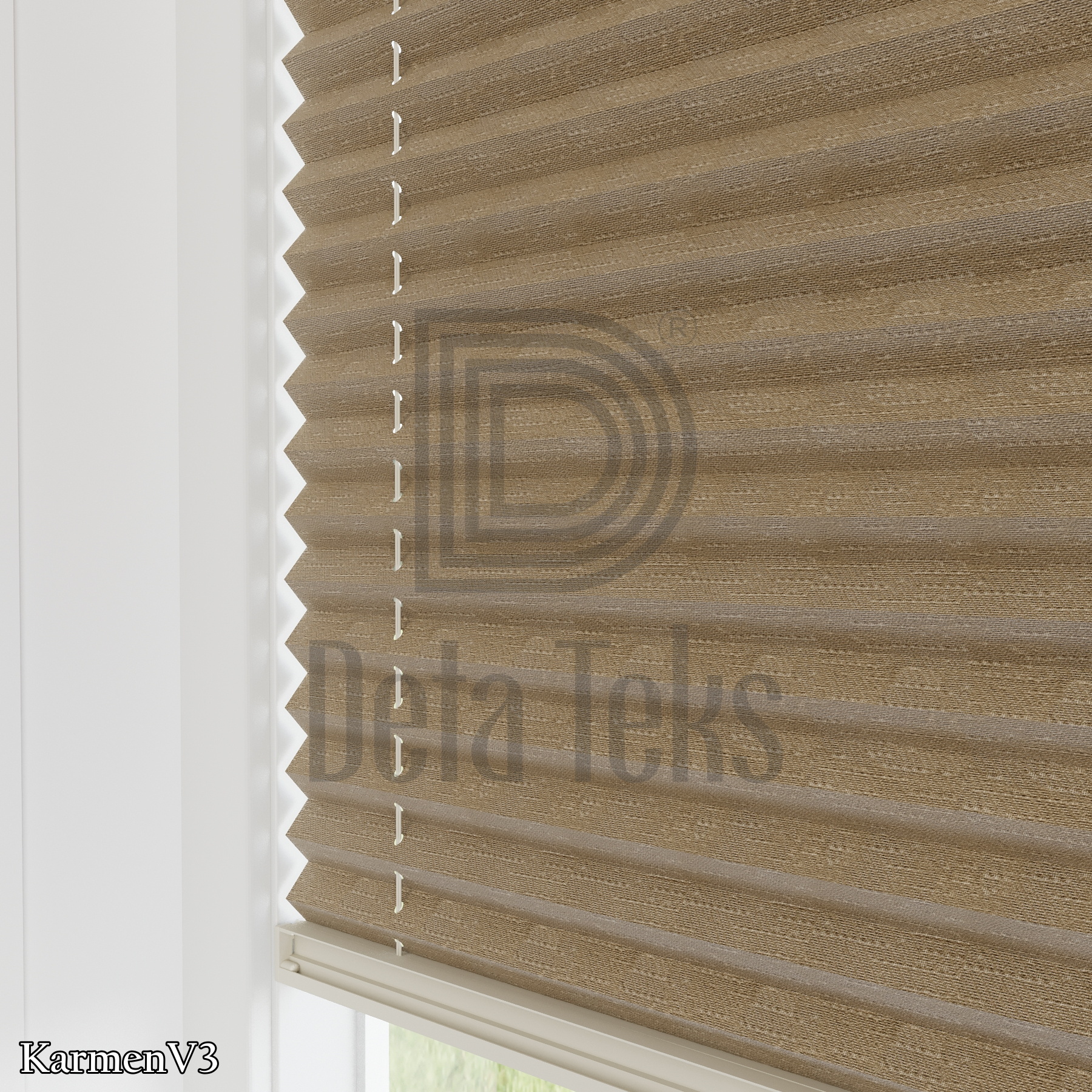 Функција: Плисе завесата Karmen овозможува топла и пријатна светлина во просторијата, задржувајќи приватност и додавајќи елегантен и модерен изглед на ентериерот.